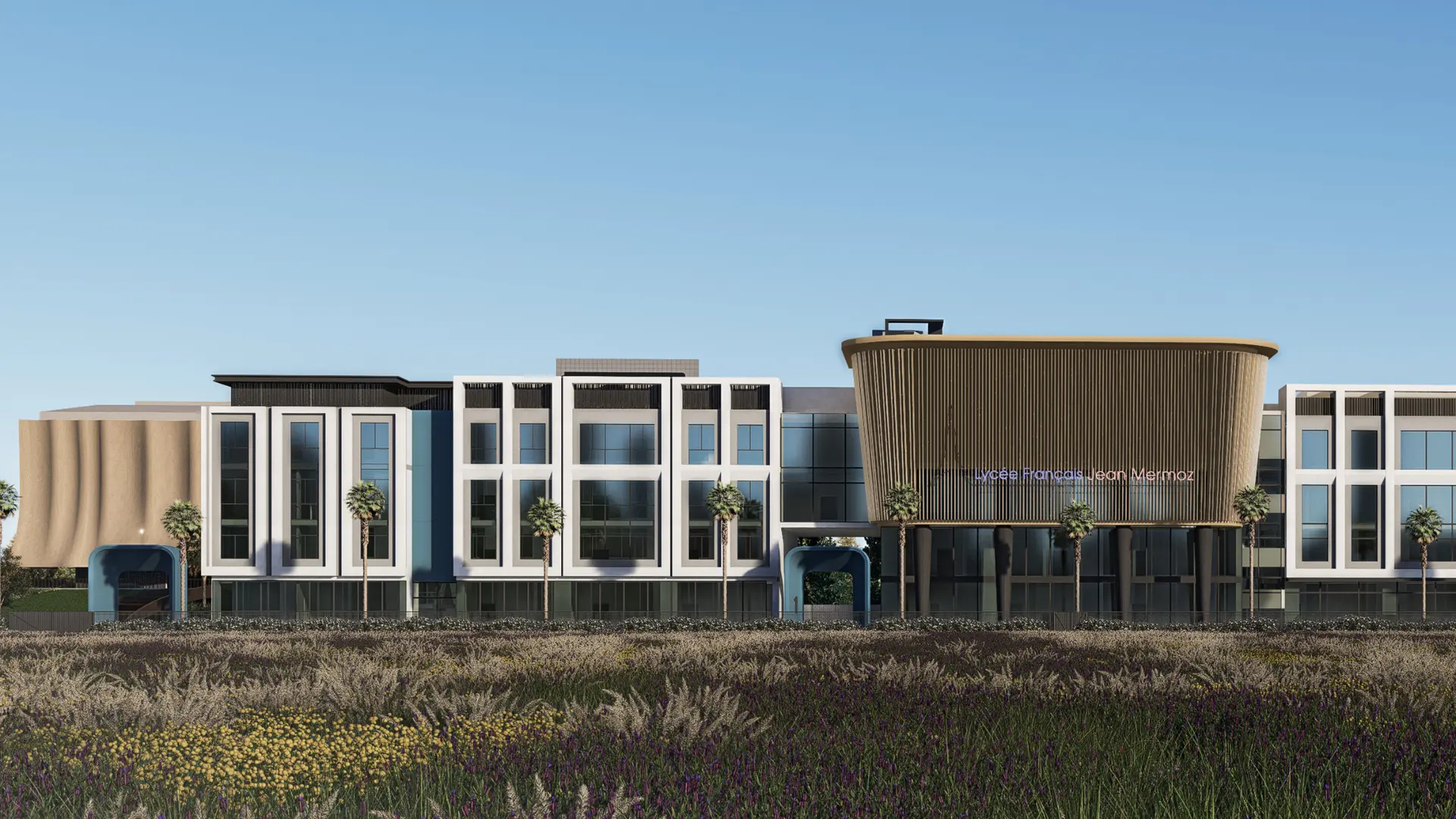 The LFJM – South project, commissioned by Lycée Français Jean Mermoz, is a modern educational facility on Hessa Street, Dubai. Spanning 25,000 sqm, it is designed to support contemporary learning environments with functional and refined architecture.