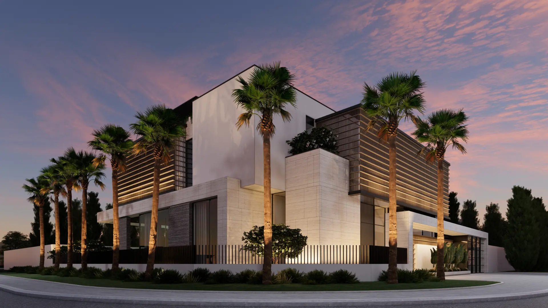 Located in the prestigious neighborhood of Umm Al Sheif, this 1,500 sqm villa blends modern elegance with traditional character. Its defining feature is a grand mashrabiya façade, thoughtfully designed to filter sunlight, cast intricate patterns across interiors, and naturally cool the living spaces—all while providing enhanced privacy. The architecture harmonizes contemporary spatial layouts with cultural design elements, creating a home that is both timeless and distinctive.